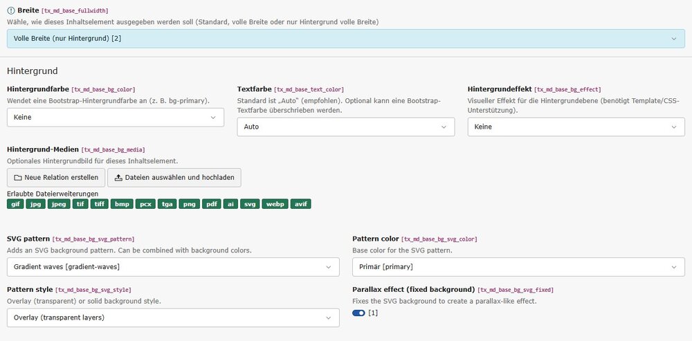 SVG Pattern volle Breite und Parallax Effekt