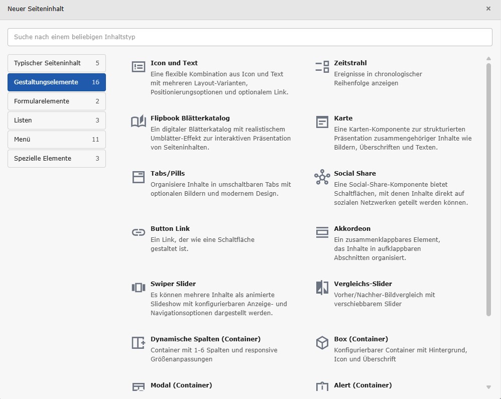 - md_elements - Bausteine & Content Blocks (Container/Patterns, Dynamic Columns, Komponenten)