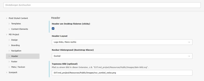 - Header-Variante (z. B. klassisch oder Center-Split),